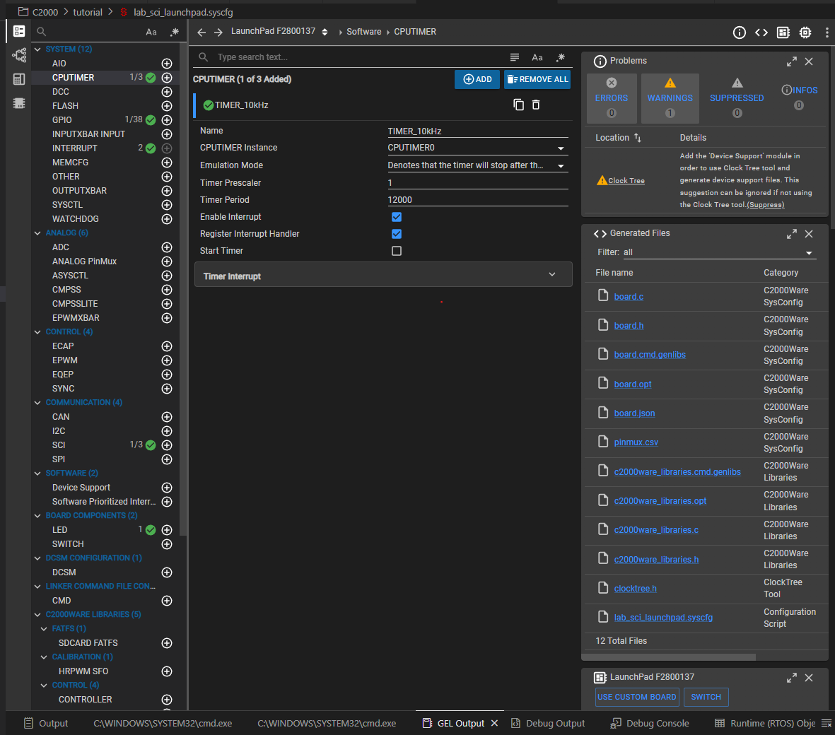 In this tutorial we will be using a launchpad LAUNCHXL-F2800137 from Texas Instruments. To simplify the setup we will not be using an additional USB<>UART dongle, only the build-in one.